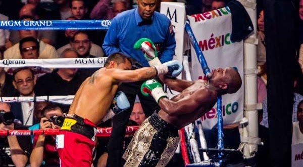 Uncategorized September 14, 2014, 122 CommentsFloyd Mayweather, (47-0, 26 KOs), retained his WBC and WBA welterweight titles, along with his WBC super welterweight title, with an unimpressively dominant decision over Marcos Maidana, (35-5, 31 KOs), that had the 16,144 fans in attendance at the MGM Grand Garden Arena in Las Vegas booing through most of the final round. Scores were 115-112, 116-111, 116-111.