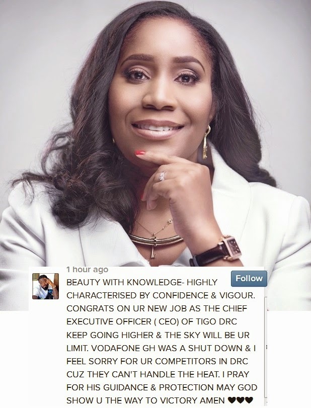 Uncategorized September 30, 2014, 1 CommentAfter resigning as the first female Chief Marketing Officer at Vodafone Ghana, there were speculations that Uche Ofodile was going for a similar position in South Africa or London with another telecom company, but it seems, Uche, the wife of Ghanaian musician-Captain Planet has taken up a bigger challenge as the CEO of TIGO in DRC.