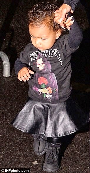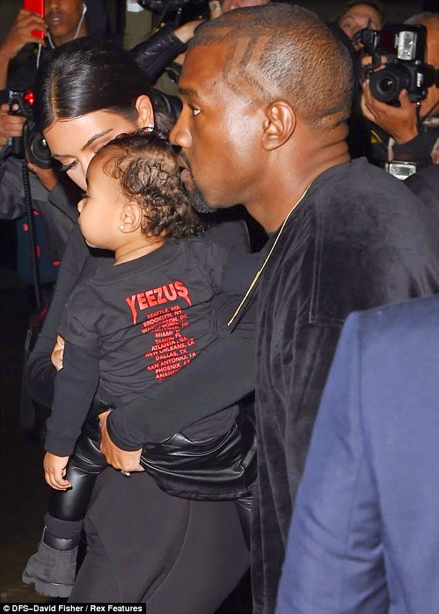 The cutie wore leather trousers, black skirt, black boots and a Yeezus tour top. Her parents were also all dressed in black. See more photos after the cut..